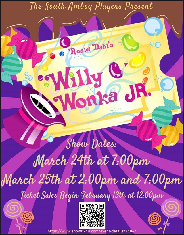The South Amboy Players Present: Willy Wonka JR. February 21, 2023 Show Dates March 24th - 7:00pm March 25th - 2:00pm & 7:00pm Purchase Tickets Here